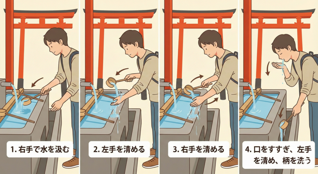 伏見稲荷大社のような神聖な場所に上がる前に、日々の暮らしで知らない間にまとってしまった心のホコリや体の穢れをサッと洗い流して、「清らかスイッチ」をオンにする準備だと思ってください。